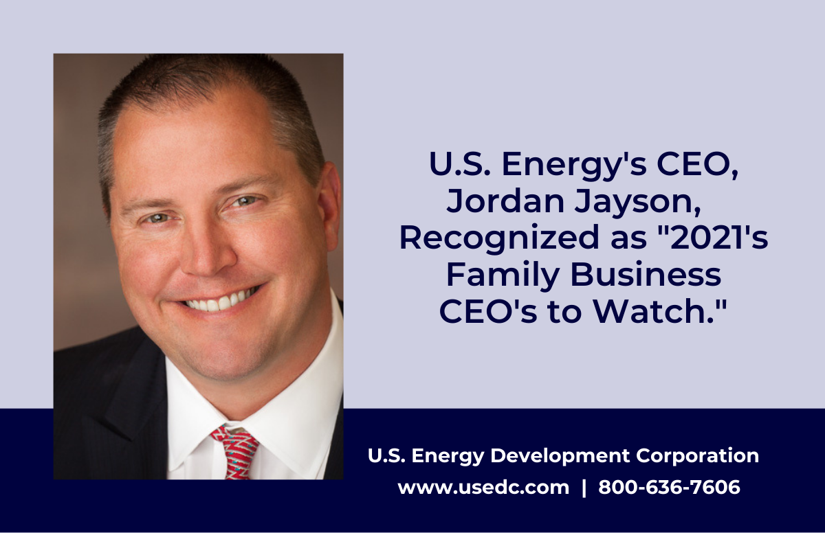 (ARLINGTON, TEXAS) - February 1, 2022 - U.S. Energy Development Corporation (U.S. Energy) is proud to announce its CEO, Jordan Jayson, was chosen by Family…