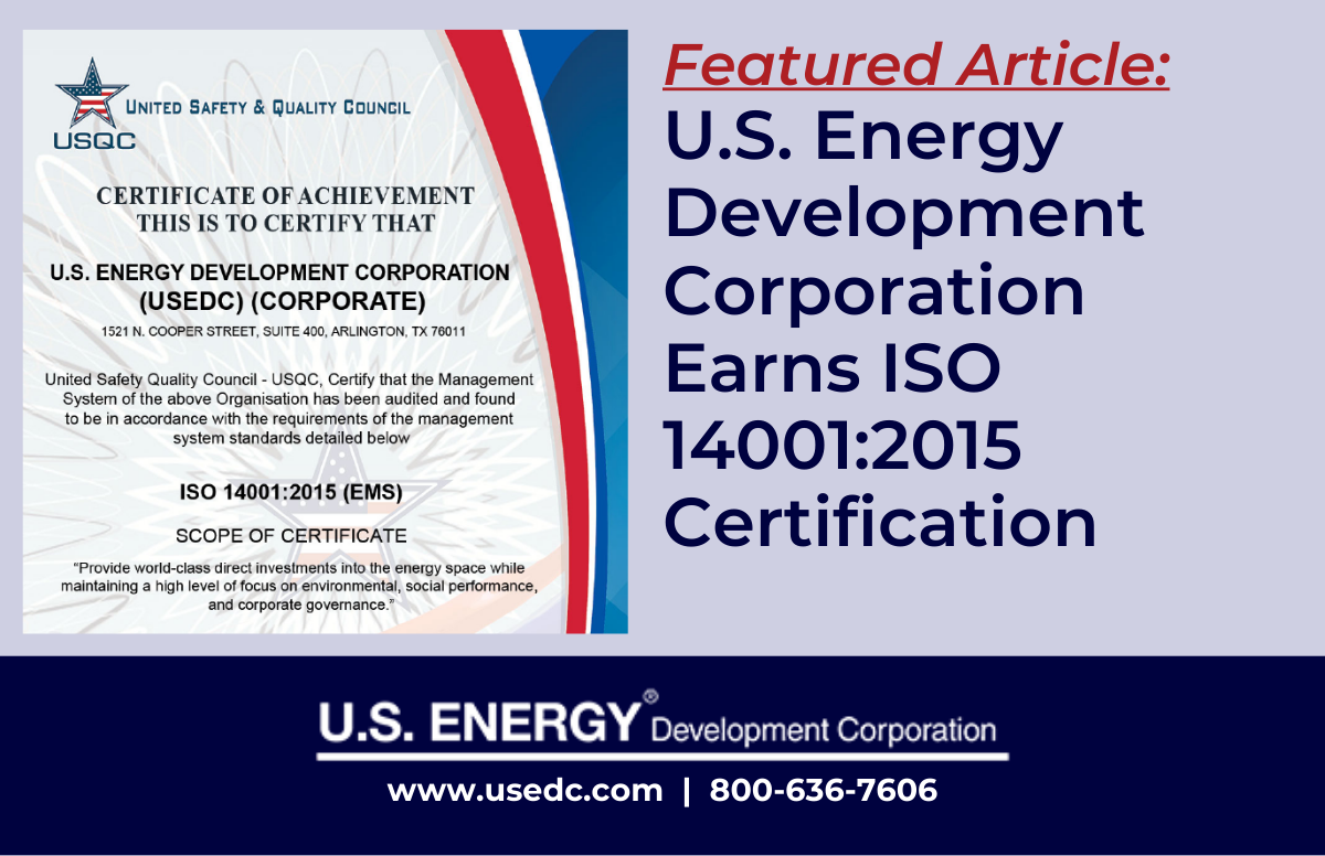 U.S. Energy Development Corporation Earns ISO 14001:2015 Certification